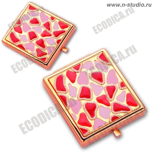 Зеркало квадратное карманное со стразами Сваровски (Swarowski) косметическое